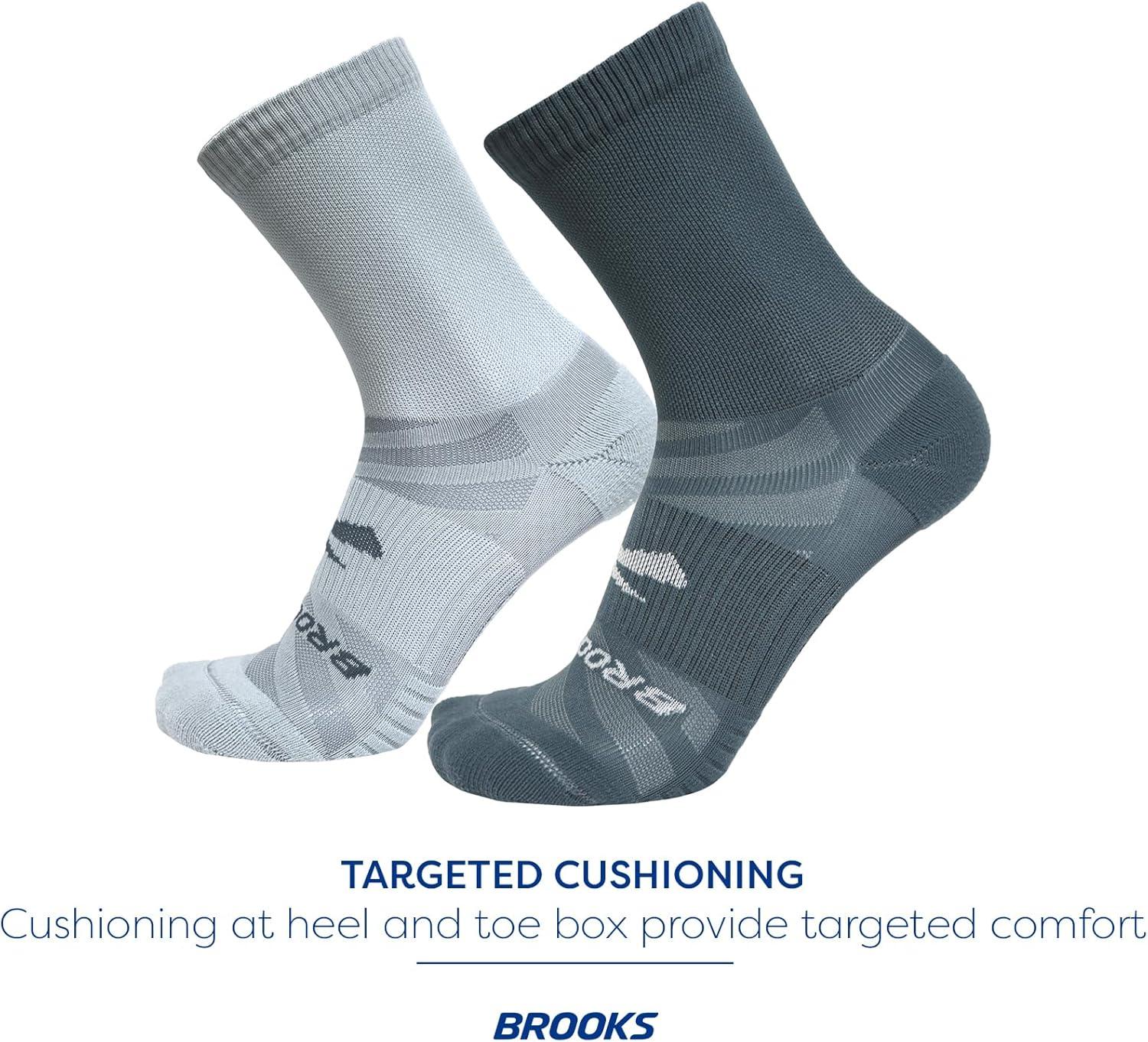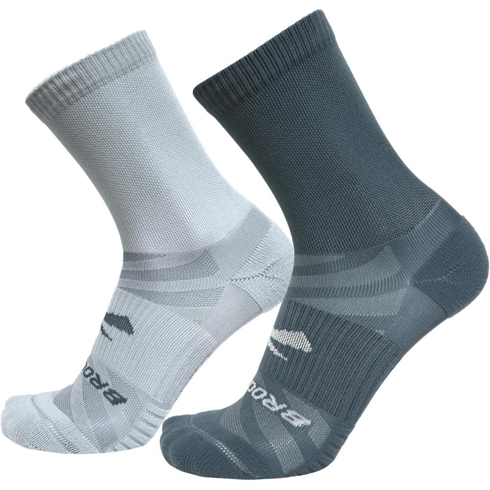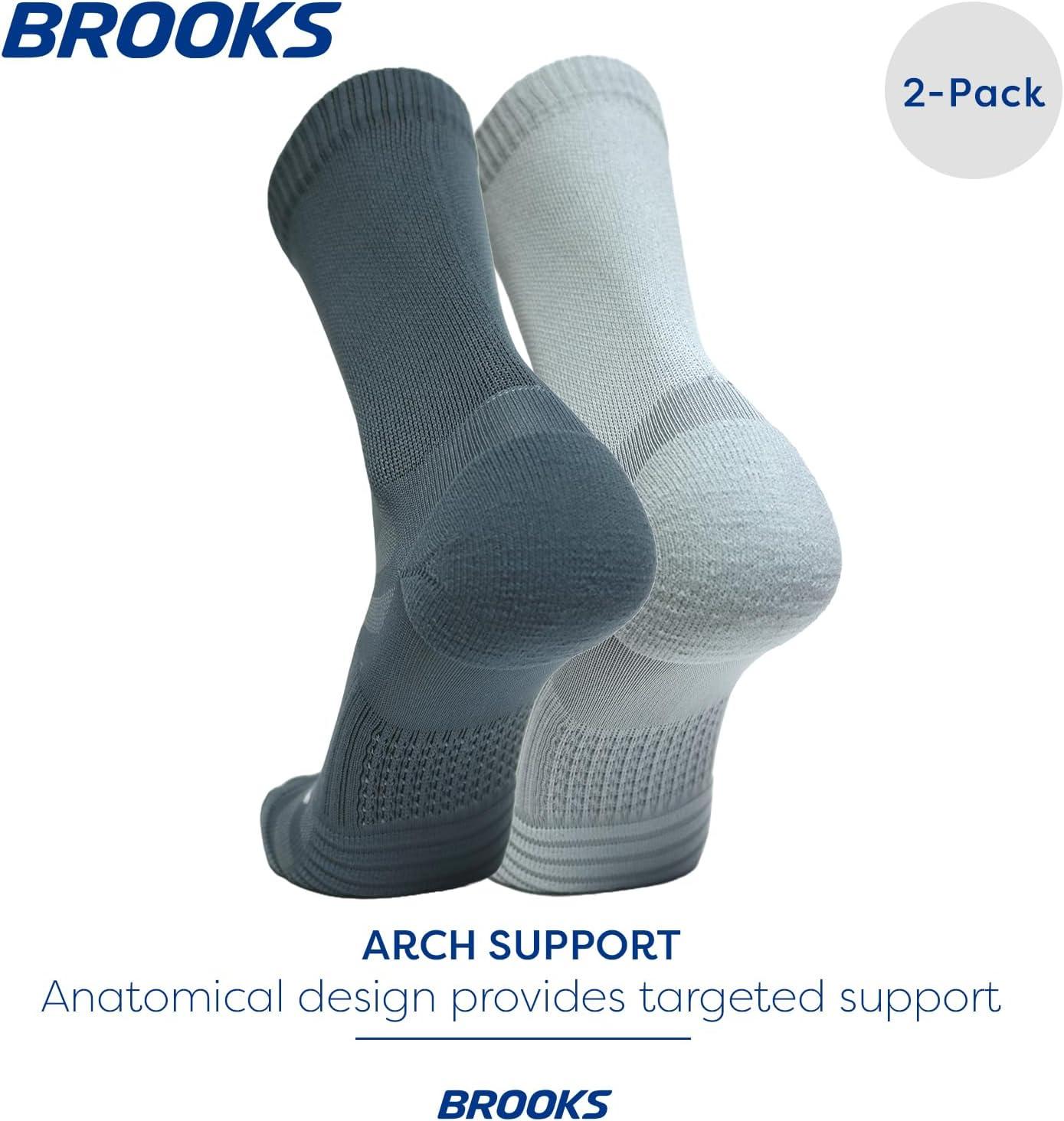 Brooks Ghost Lite Crew Socks I Performance Running, Comfort Fit with Arch Support for Men & Women (2-Pack Set)(Storm & Smoke)