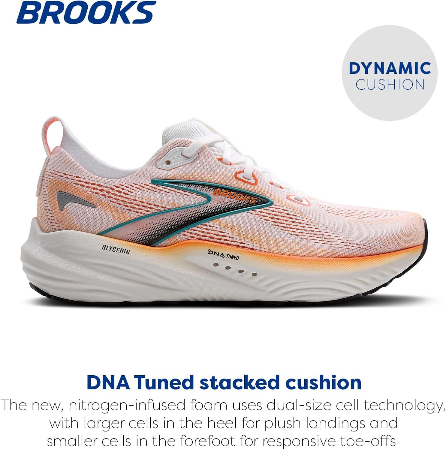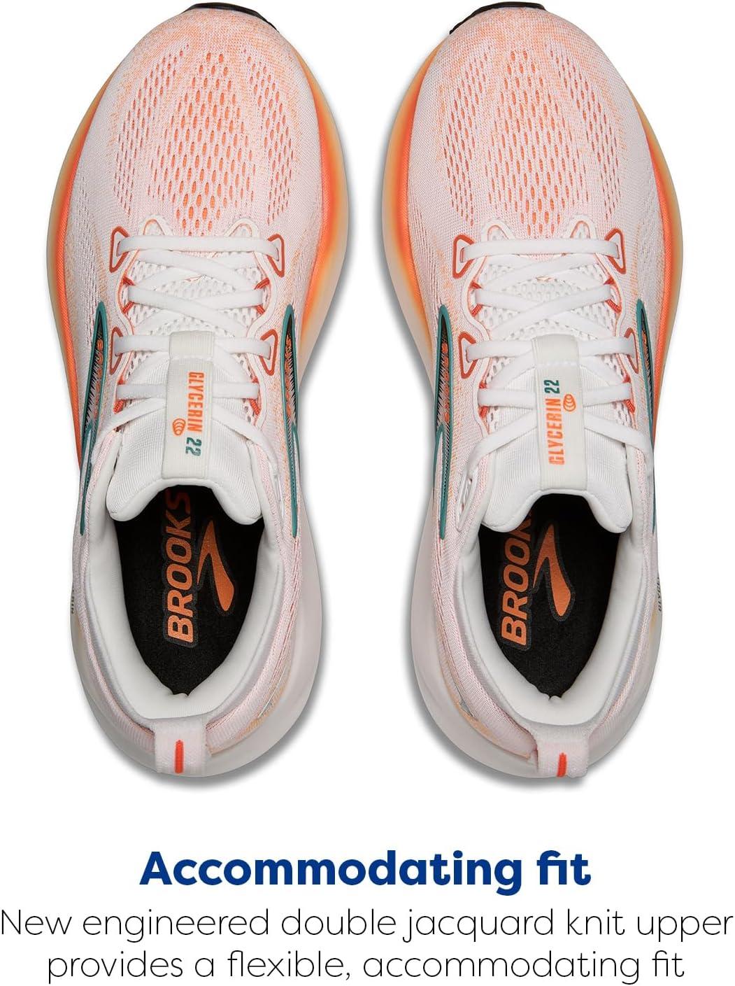 Brooks Men’s Glycerin 22 Neutral Running Shoe(White/Orange/Green Blue Slate)