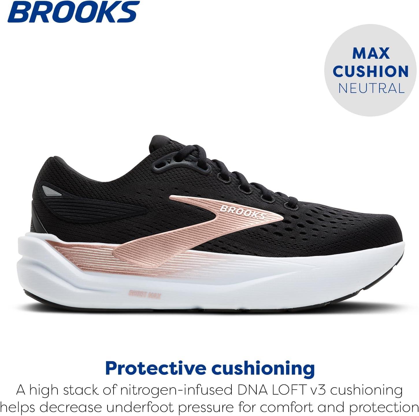 Brooks Women’s Ghost Max 3 Neutral Running & Walking Shoe(Black/Black/Rose Gold)