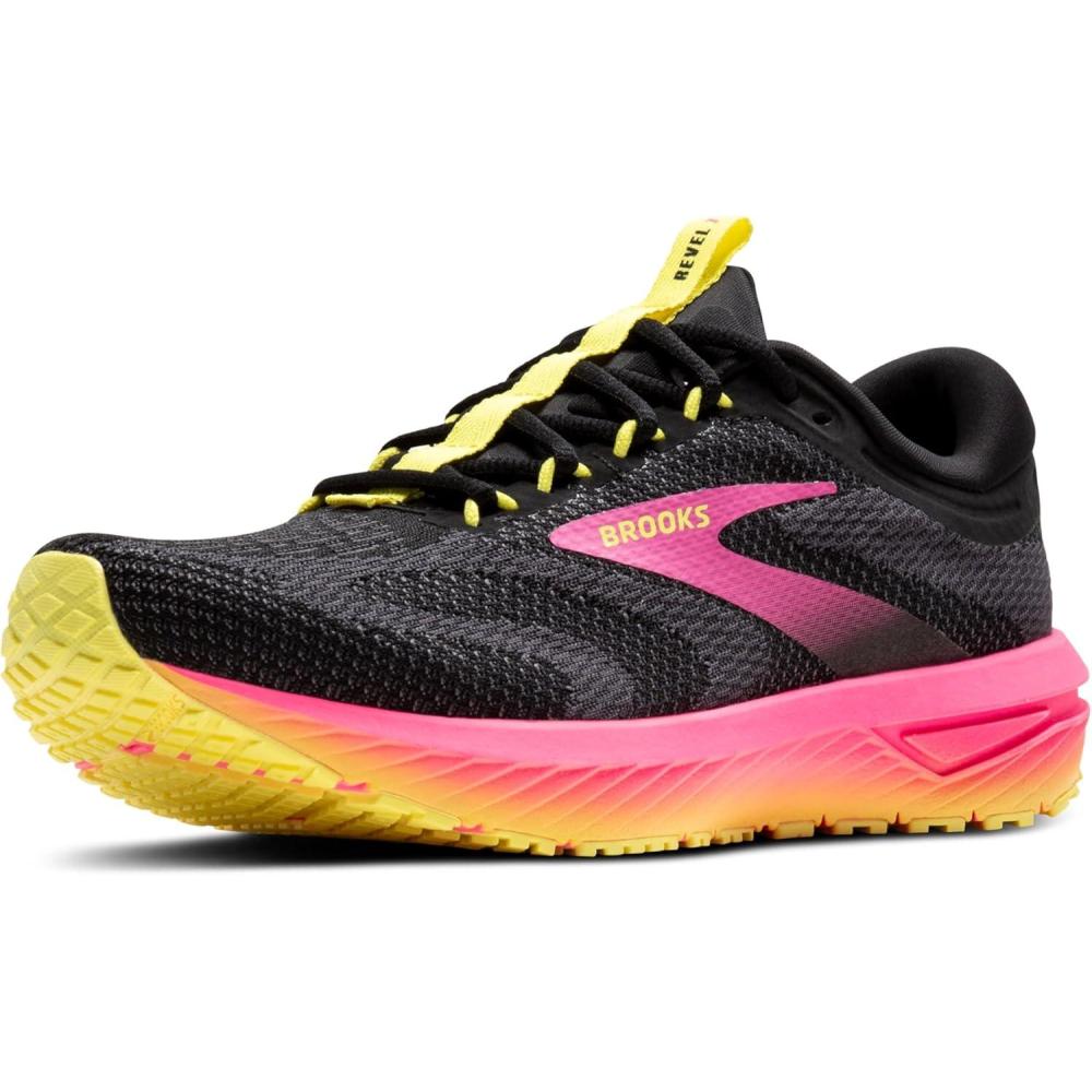 imageBrooks Womens Revel 7 Neutral Running ShoeBlackPinkLemon Tonic